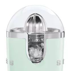 The CJF01 Citrus Juicer from Smeg’s 50s Style collection blends iconic design with everyday performance. The die cast aluminum body ensures durability, while the stainless steel filter, spout and cone provide strength and hygiene. Equipped with a 70 W motor and integrated on off sensor, it starts automatically with gentle pressure on the fruit. The anti drip spout prevents spills, keeping the kitchen surface clean. Easy to disassemble and clean, it includes a protective dust cover. A stylish appliance that combines efficiency and retro charm, also a perfect design gift idea for lovers of fresh and healthy mornings.