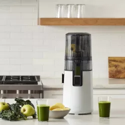 The Hurom H70 slow juicer features a compact design and advanced cold-press technology to create nutrient-packed juices. Utilizing the All in One system with a multi-screw filter, it’s perfect for preparing juices and sorbets while preserving essential vitamins, enzymes, and nutrients. With a slow juicing speed (70 RPM), it prevents heat generation, maintaining the natural properties of fruits and vegetables. Ideal for an authentic taste experience and easy cleaning, it’s the perfect companion for a healthy and versatile kitchen.