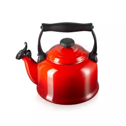 Elevate your everyday coffee or tea ritual with this stylish stovetop kettle. Crafted from enamelled steel, it adds a vibrant pop of colour to your home. A charming whistle sounds when your water’s ready. while an ergonomic, heat-resistant handle makes for safe, easy pouring. - Material: Enamelled Carbon Steel - Capacity: 2.1 L - Dimensions: L 27.3 cm x W 20.9 cm x H 25.1 cm - Compatible with induction - Cleaning: Clean your kettle after each use – hand wash it with a neutral detergent. Never use abrasive scrubbers or detergents as they could damage the surface. Done? Dry your kettle thoroughly to prevent mineral deposits. Don’t leave water sitting in your kettle when it's not in use. To remove mineral deposits fill the kettle up to the maximum mark level with a mixture of 50% water and 50% white vinegar and allow to simmer for 20 minutes. If deposit persists use a gentle descaler. Dry well after washing and store in a dry place. - Warranty: 5 years