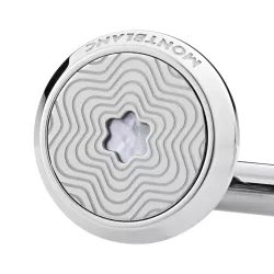 The Montblanc Star cufflinks combine classic elegance with the distinctive identity of the brand. Crafted from precious steel, they feature a refined variable star pattern enhanced by the iconic Montblanc snowcap emblem in mother of pearl. This luminous and sophisticated detail reflects the Maison design codes, transforming a formal accessory into a distinctive statement piece. Ideal for completing elegant looks, they also make the perfect gift for special occasions.