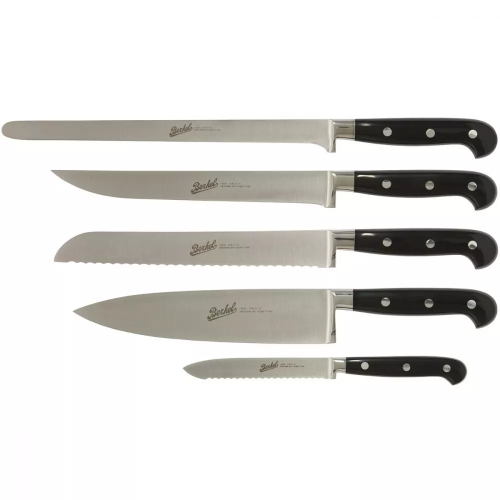 Berkel Adhoc Chef Set of 5 Knives Set of 5 knives Set of knives for different uses. Set designed so that you always have the perfect knife for the job, for slicing bread, carving a roast or ham. Kitchen and utility knives are suitable for use in a number of basic preparations. Sku: KAD5CS00SRBBL Ham Knife 26 cm Bread Knife 22 cm Roast Carving Knife 22 cm Kitchen Knife 20 cm Utility Knife 12 cm DISCOVER THE COLLECTION: AdHoc Knives | Berkel