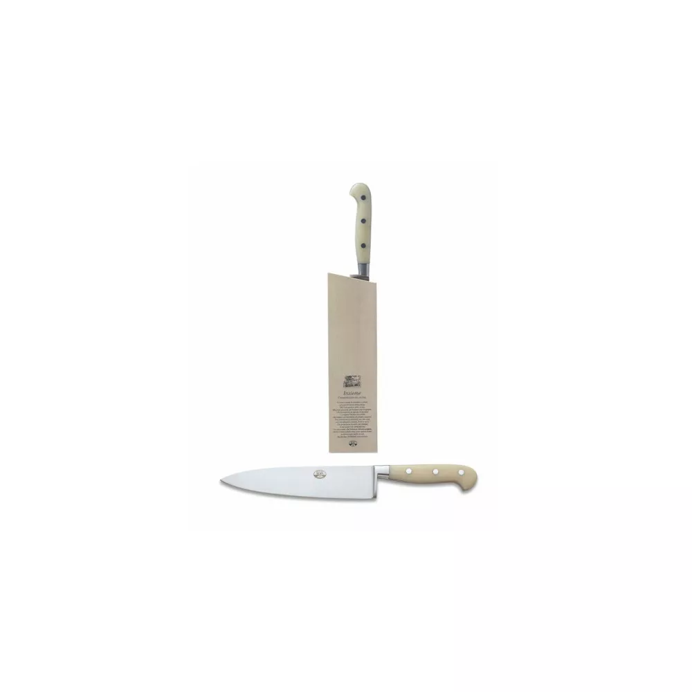 The Berti carving knife with a white handle is the ideal tool for cutting and slicing meat with precision. Made from high-quality materials, it ensures durability and excellent handling. The white handle adds a touch of elegance, while the included block allows for safe and organized storage. This knife is an essential accessory for those seeking professional performance in the kitchen.