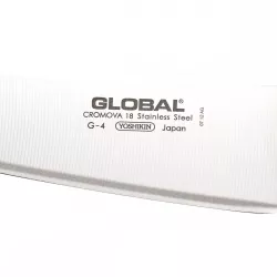 The Global G-4 is an Oriental-style cook’s knife with an 18 cm curved blade, designed for chopping, slicing and dicing. While similar in function to the classic G-2, its aesthetic features a kinked blade that gives it a sleek, modern look without altering performance.