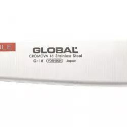 The Global G-18 is a professional-grade filleting knife with a flexible 24 cm blade, ideal for filleting large fish such as salmon, trout or cod. Part of the G-series family alongside the G-19 and G-20, this knife offers exceptional bend and strength for heavier-duty preparation work.