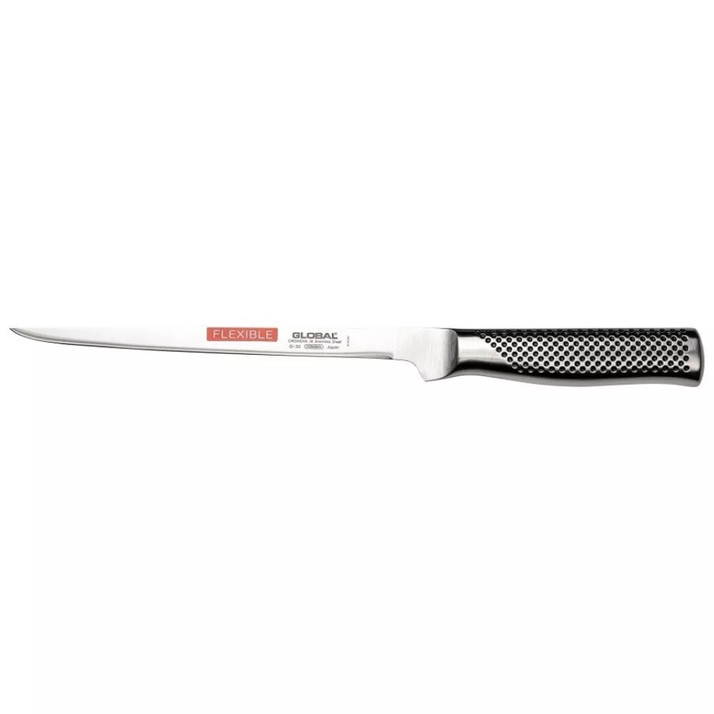 The Global G-30 is a specialist filleting knife inspired by Scandinavian preferences. Designed specifically for Global's Swedish fans, this knife mirrors the functionality of the G-21 but features a longer and more flexible blade tailored to their style of filleting.
