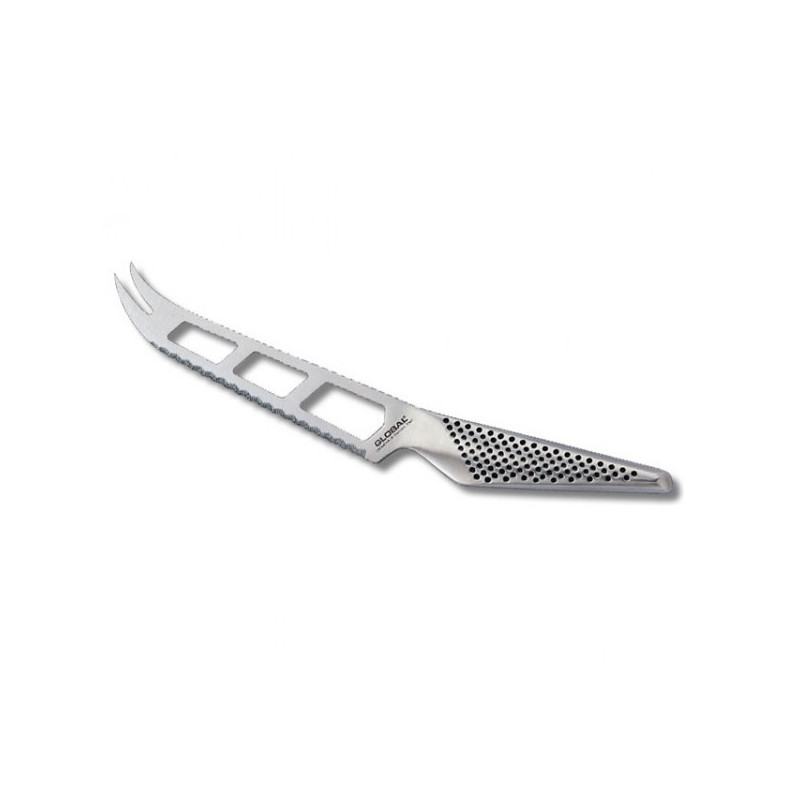 The GS-10 is Global’s universal cheese knife, suitable for all types of cheese — from hard aged cheddar to soft and creamy brie. Its serrated blade features holes to reduce stickiness and friction, while the twin prongs at the tip are perfect for serving slices directly from the board.