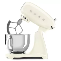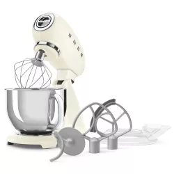 The 50s Style stand mixer perfectly combines iconic design and professional performance, bringing both elegance and functionality into the kitchen. Inspired by 1950s aesthetics, it features advanced technology with planetary mixing action and a 1000 W direct drive motor for precise and consistent results. The Smooth Start system ensures gradual activation, reducing splashes and improving ingredient blending, while the Steady Mix system minimizes vibrations for enhanced stability.