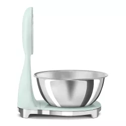 Featuring a dual display—an analog dial for a retro touch and an LED digital screen for instant readings—it combines style and functionality. The removable stainless steel bowl is dishwasher-safe and compatible with Smeg stand mixers, ensuring maximum convenience.