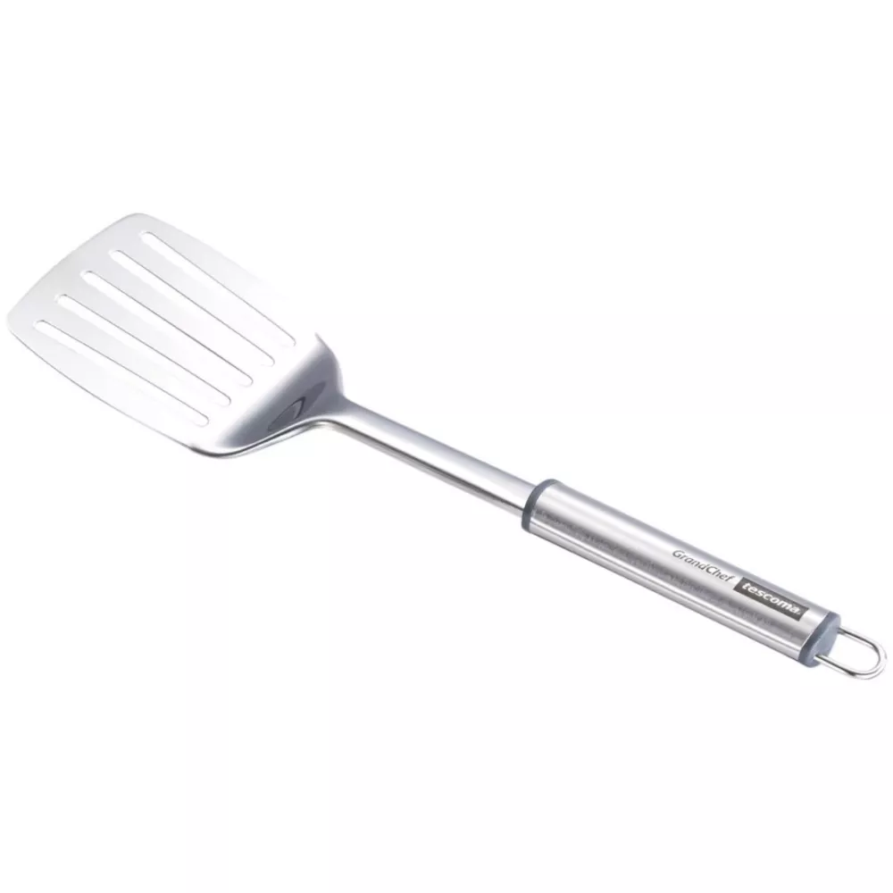 The Tescoma slotted turner 428280 is a practical and elegant kitchen utensil designed to assist with many cooking tasks. Made from high quality stainless steel, it features refined finishing and a carefully crafted design. The perforated surface allows liquids and oils to drain easily, making it ideal for lifting and serving vegetables, fried foods or other dishes directly from the pan. The long handle ensures a comfortable and secure grip during use, while the practical hanging hook allows convenient storage among other kitchen utensils.