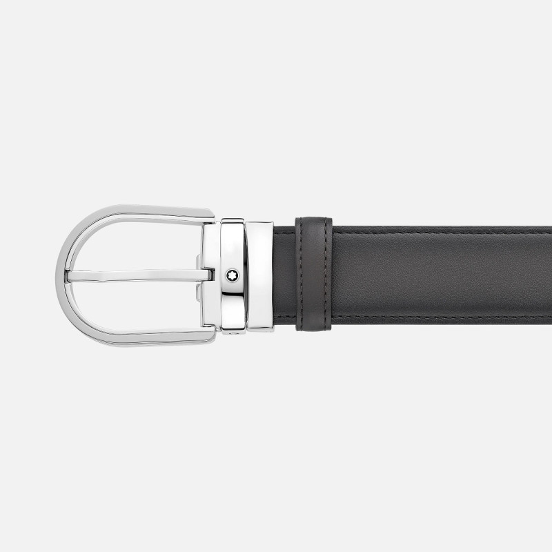 Horseshoe-shaped buckle with palladium and ruthenium finish. Self-adjustable belt, 3.5 cm x 120 cm, in shaded grey leather. An accessory that combines traditional elements with a modern style.