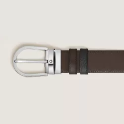 This Montblanc reversible belt in grained leather conveys a bold yet refined style, designed for those who appreciate versatility and character in a luxury leather accessory. One side features soft, tactile black grained leather, while the other is crafted in smooth ebony Meisterstuck leather, offering a more formal and elegant expression. The 35 mm width creates a confident visual statement, enhanced by the iconic horseshoe buckle with polished palladium finish. A versatile accessory that elevates any outfit with balance and personality, also conceived as the perfect gift.