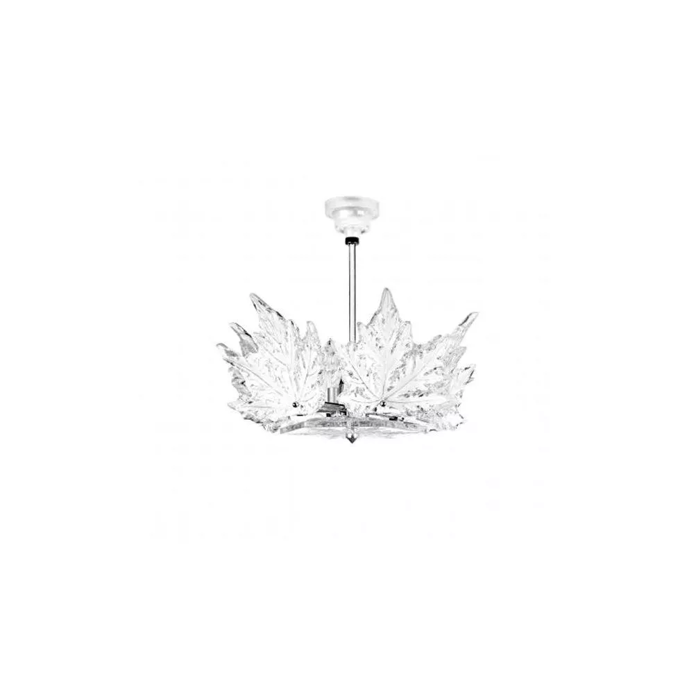 From the sconce to the monumental chandelier, Lalique was inspired by the Champs-Élysées bowl designed in 1951 by Marc Lalique to create this lighting collection. The finely veined leaves are reminiscent of the sumptuous alleys of plane-trees that run alongside the "most beautiful Avenue of the World". Through these pieces, it is almost as if the soul of Paris was captured, frozen in crystal. Through a mysterious alchemy, the light shining through the purity of the crystal creates ever changing reflections, making every piece unique. Clear crystal, chrome finish (1 tier) Also available in clear crystal and gilded finish (prices on request) Dimensions: H 10.04" x D 22.05" (H 25,5 cm x D 56 cm) Weight: 42.99 lbs (19,50 kg) Minimum drop: 12.99" (33 cm) Six E12 or E14 incandescent and fluorescent bulbs This luminaire is compatible with bulbs of the energy classes A++, A+, A, B, C, D et E The luminaire is sold with a bulb of the energy class: D Handcrafted in France Designed by Marc Lalique, 1957