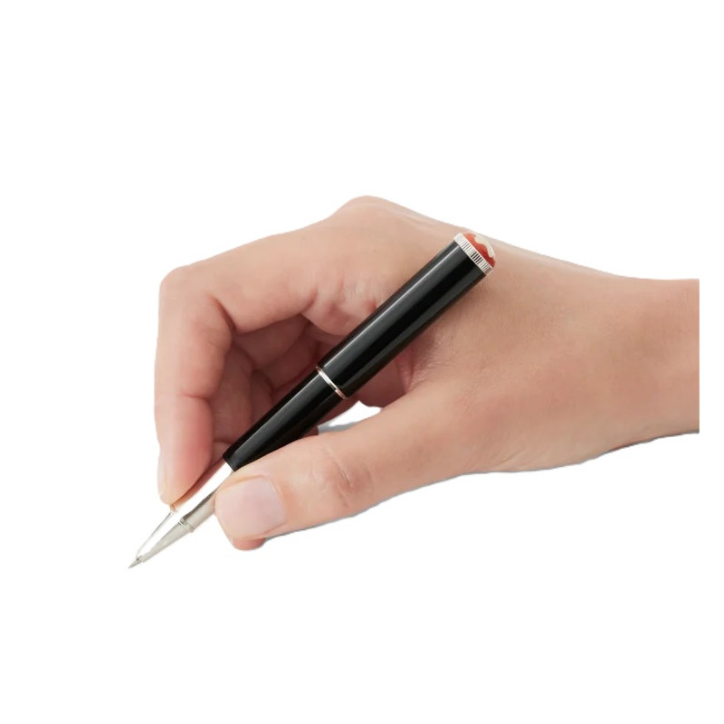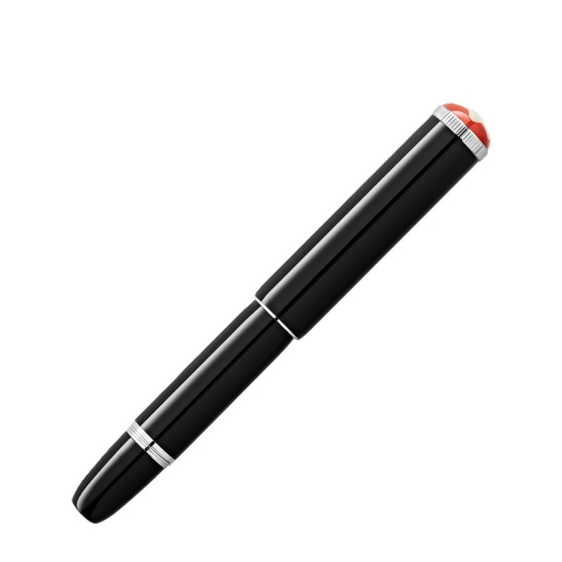 The Montblanc Heritage Collection Rouge et Noir “Baby” celebrates the pioneering spirit and rich tradition of the Maison. Drawing inspiration from the 1920s “Baby” pens, Montblanc has modernized this revolutionary design. The name playfully references the compact size of this model compared to other Montblanc writing instruments. Crafted in exquisite black lacquer with platinum-finish details, it features the Montblanc emblem in fine resin, framed by the iconic coral hue of the Rouge et Noir collection.