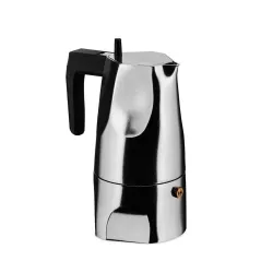 MOKA ESPRESSO COFFEE MAKER, OSSIDIANA MT18 - ALESSI Attentive to the narrative capacity of objects, Sicilian architect Mario Trimarchi has designed the "Ossidiana" espresso coffee maker. A project that, like others by the author, originates from memories and fragments of images told through the form of an object. "Ossidiana" encapsulates the memory of the facets of the traditional Moka and those of the volcanic stone of the same name. Espresso coffee maker in cast aluminum Handle and knob in thermoplastic resin
