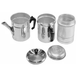 Made of high quality aluminium with heat resistant bakelite handles, it is composed of multiple elements working together to achieve a unique result. The percolation system allows water to slowly pass through medium coarse ground coffee, enhancing aromas and nuances. An iconic and functional piece, ideal for lovers of traditional coffee and a perfect gift for those who value timeless rituals.