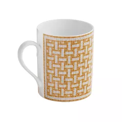 The Mosaique au 24 mug by Hermès is a perfect example of contemporary elegance and iconic design. Crafted in porcelain with screen printed and hand applied decorations, it is enhanced by gold or platinum details that highlight the refined geometric patterns of the collection.