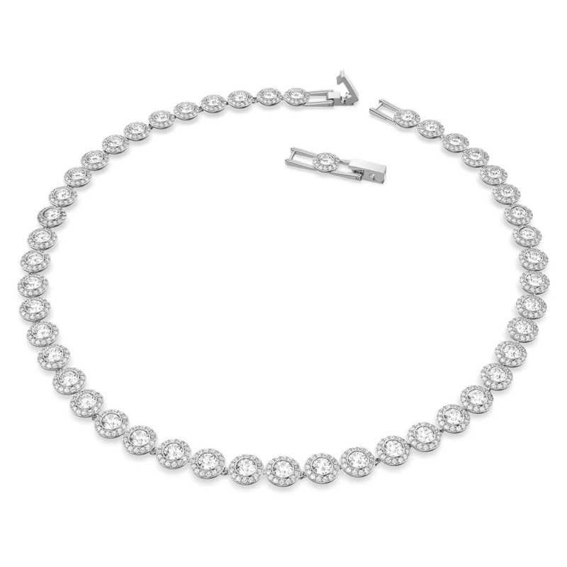 Collection: Una Angelic / Angelic Milano Color: White / Black Length: M: 38 cm / Black Angelic Milano is 38-47 cm S: 33 - 36 cm Material: Crystals, Rose gold tone plated / rodhium / gold plated / rhutenium plated Type of clasp: Fold-over clasp