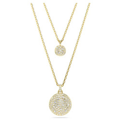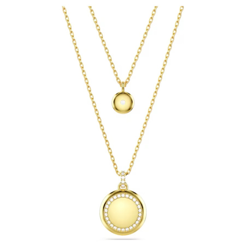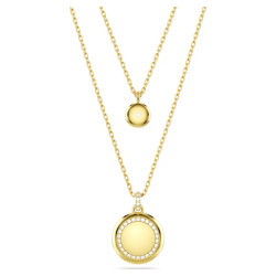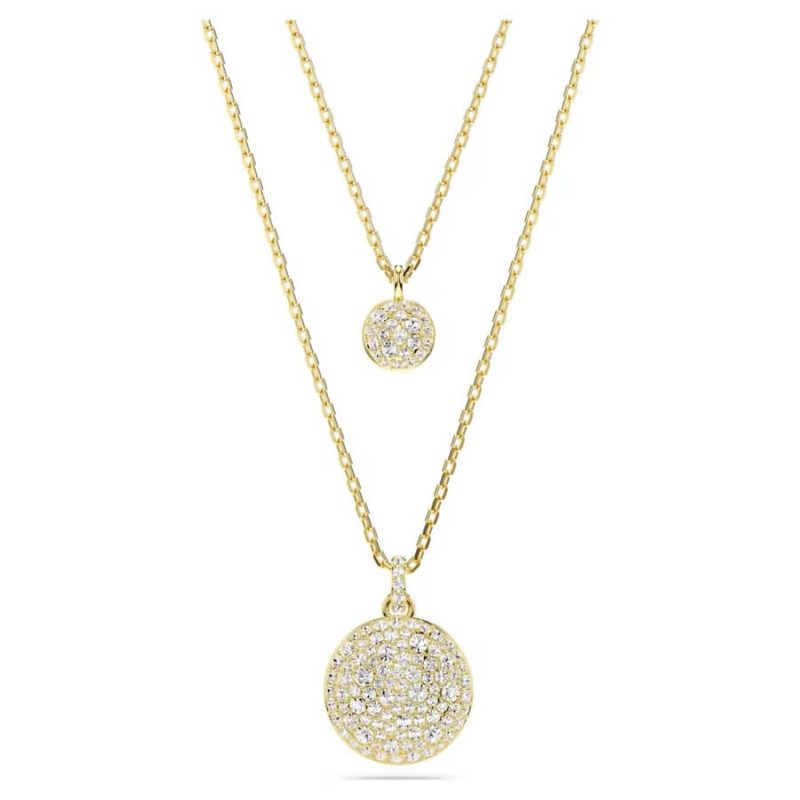 The design features two chains, each with a domed meteor motif that is beautifully adorned with a snow pavé of clear round crystals in different sizes. For extra versatility, the pendant can be reversed, revealing a halo of crystals around the larger motif, and a single crystal at the center of the smaller motif. Collection: Meteora Length (minimum - maximum): 38 - 45 cm Motif size: 2.2 x 1.6 cm Material: Crystals, Rose gold-tone / rose gold-tone / rhodium plated Color: White Clasp type: Lobster.