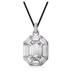 Lucent pendant, Octagon cut, White Article no.: 5698526 Collection: Lucent Length (minimum - maximum): 65 - 75 cm Motif size: 4.3 x 2.5 cm Material: Crystals, Aluminum, Cotton cord Color: White Clasp type: Sliding cord
