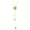 A charming jewel that blends elegance and vibrancy. The Idyllia Y-shaped pendant, inspired by nature's beauty, features a delicate flower with luminous green petals in various shapes and shades. Two dangling crystals, one pink and one green, add movement and sparkle to the design. The adjustable fine chain allows for a customizable fit, making it a versatile and sophisticated accessory—perfect for elevating any look or as a thoughtful gift.