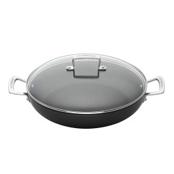 BARAZZONI CASSEROLE WITH LID, 20 cm DIAMETER, BLACK TITAN; Cod. 85560202098 This line has also been upgraded with the new state-of-the-art coating. The non- stick feature lasts a very long time and is resistant to damage caused by intensive use. Aluminium with non-stick coating Ø cm 20 - lt 2,4 Steel Handle
