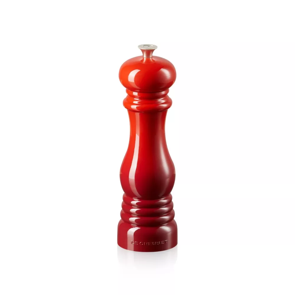 PEPPER MILL - LE CREUSET This Le Creuset pepper mill, combining quality, style and next level function, makes seasoning a joy. It features a long lasting, fully adjustable ceramic grinder, so you can go fine or coarse – however you like it. Material: ABS Plastic Dimensions: Size S: L 6 x H 21 cm Size L: L 7 x h 30 cm