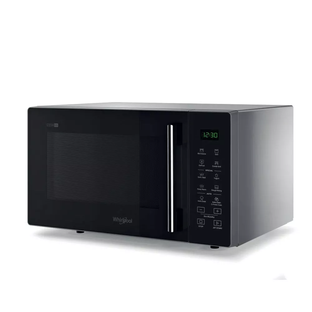 MICROWAVE WITH GRILL, MWP 253 SB - WHIRLPOOL Elevate your kitchen with top-tier performance and a sophisticated design. Purchase now and discover culinary perfection at your fingertips. Infuse a touch of modernity into your kitchen with the 25-liter Silver Black Microwave Oven with Grill. Its compact dimensions (48.3x41.9x28.1 cm) conceal a spacious interior cavity (34.0x34.4x22.0 cm) for creating generous dishes. Key Features: Number of power levels: 7 Microwave power: 900 W, Grill power: 1000 W Cooking mode: Microwave + grill LED display, clock, and child lock Revolving table (270 mm) and rotating plate Capacity: 25 liters, handle opening Electronic control, eco mode Voltage: 230-240 V, Frequency: 50 Hz Color: Silver Black, Modern and elegant design