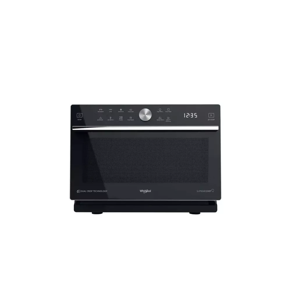 Microwave Oven MWSC 933 SB - Whirlpool: Perfect Cooking at Your Fingertips The Whirlpool MWSC 933 SB Microwave Oven is the perfect solution for flexible and impeccable cooking, offering the performance of a traditional oven in a compact space. Combined Technology for Cooking Versatility: Thanks to its combined technology, this microwave oven offers the cooking flexibility of a traditional oven. You can experiment with a wide range of recipes with delicious and precise results. Exclusive 6th SENSE Technology: The 6th SENSE technology is the intelligent core of this microwave oven. It automatically adjusts the time, temperature, and energy consumption during preparation, ensuring consistently perfect results. Crisp Function for Unique Crispiness: With the Crisp function and the dedicated plate, prepare incredibly crispy pizzas, cakes, and casseroles anytime. Enjoy unparalleled crispiness like never before. Steam for Healthy and Tasty Cooking: Steam technology allows you to prepare healthy and flavorful recipes quickly, preserving the taste and nutrients of the food. Jet Start for Fast Heating: The Jet Start function maximizes the microwave power for about 30 seconds, rapidly heating foods with high water content. Perfect for quick reheating. Dimensions: Width 49 cm x Height 37.3 cm x Depth 54 cm