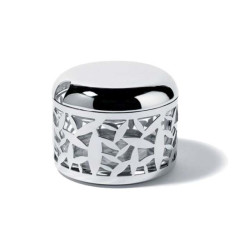 Christofle Vertigo SIlver Plated Cheese/ Jam Dish Set a playfully elegant table with the silver plated and lidded cheese/ jam dish in the Vertigo pattern. Vertigo’s bold motif — a subtly asymmetrical, thick ring often placed playfully askew — can be found on every piece in the collection designed by Andrée Putman. MATERIAL • Silver Plated & Glass DIMENSIONS • Ø 6 cm H : 7.5 cm