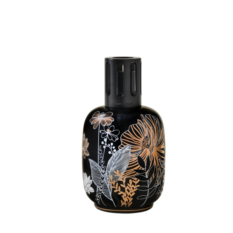 This catalytic Berger lamp not only fragrances but also purifies the air in your home, eliminating unwanted odors. Its intricate floral design, inspired by botanical wallpaper patterns, adds a sophisticated touch, while the gold and silver accents enhance its luxurious appeal.