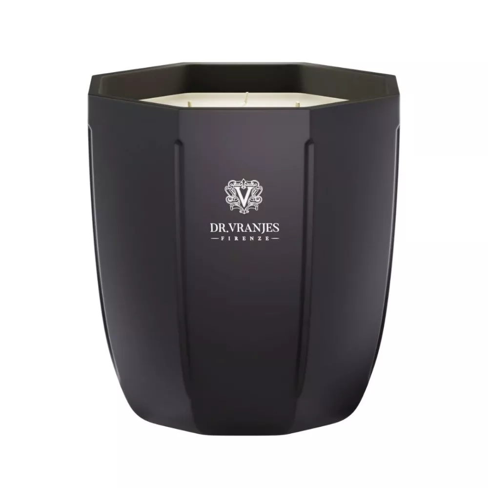 The Ambra scented candle in onyx glass fills the room with a warm, mysterious and sensual atmosphere. Enclosed in an elegant onyx colored glass container, it releases an intense blend of floral notes, precious resins and aromatic woods, transforming any space into a refined oriental inspired setting. Created by master perfumer Paolo Vranjes, this candle evokes the richness of fine fabrics and rare spices, offering a sophisticated and enveloping experience.