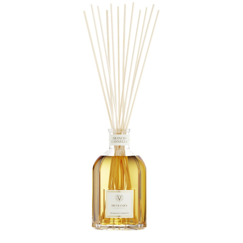 Orange Cinnamon is an energetic home fragrance, initially fresh, thanks to the bitter orange blossom, and then warm thanks to the enveloping and spicy notes of Ceylon cinnamon. Olfactory Pyramid: Bitter Orange Flowers, Orange, Ceylon Cinnamon Area: day SIZE: 100 ML: ideal for very small spaces. Size: Ø 5.6 cm x H 11.7 cm, with sticks H 17 cm 250 ML: ideal for spaces from 5 to 10 sqm. Size: Ø 7.4 cm x H 15.2 cm, with sticks H 34 cm 500 ML: ideal for spaces from 10 to 20 sqm. Size: Ø 9.1 cm x H 19 cm, with sticks H 40 cm 1250 ML: ideal for spaces from 20 to 30 sqm. Size: Ø 12 cm x H 24 cm, with sticks H 54 cm 2500 ML: ideal for spaces from 30 to 50 sqm. Size: Ø 15 cm x H 30.5 cm, with sticks H 60 cm 5000 ML: ideal for spaces from 10 to 20 sqm. Size: Ø 18.2 cm x H 37 cm, with sticks H 70 cm