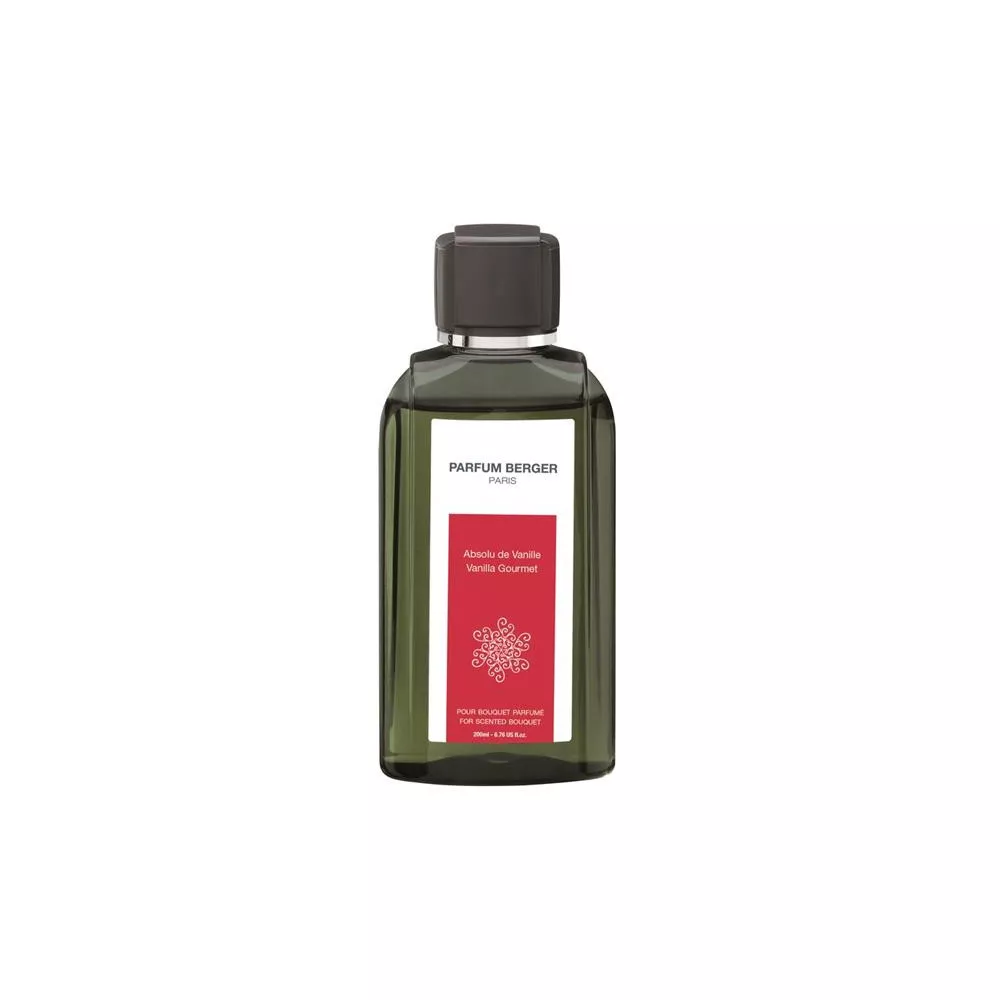Parfum Berger Paris - Ricarica 200ml per Bouquet profumati. Profumo Absolu de Vanille. Un cocktail di note golose che evocano tutta la ricchezza di vaniglia, con note dolci e zuccherate (rhum, anicestellata), un cuore coloso (vaniglia di Bourbon) e un fondo di cioccolato e mandorle ( cacao e Tonka). Profumi garantiti senza coloranti.