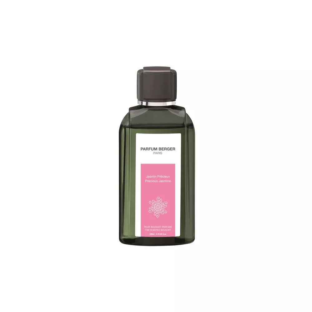 Parfum Berger Paris - Ricarica 200ml per Bouquet profumati. Profumo Jasmin Précieux. Simbolo dell'eleganza, il Gelsomino si esprime con delicatezza in questa composizione raffinata.L' incontro tra il calore del Gelsomino e l'esotismo dell'ylang rivela un cuore floreale di note fresche e allo stesso tempo fruttate. In testa, la dolcezza invitante del gelsomino si mescola alle note soavi dell'ylang. Nelle note di cuore, un bouquet di note floreali dolci e speziate (garofano e peonia). Nelle note di fondo, l