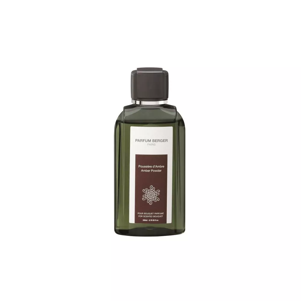 Parfum Berger Paris - Ricarica 200ml per Bouquet profumati. Profumo Poussière d'Ambre. Questa sensuale fragranza sprigiona un leggero accordo di rosa, per poi offrirci un cuore composto di mughetto e vaniglia, ed infine lasciar spazio ad un fondo di ambra e patchuli. Profumi garantiti senza coloranti.