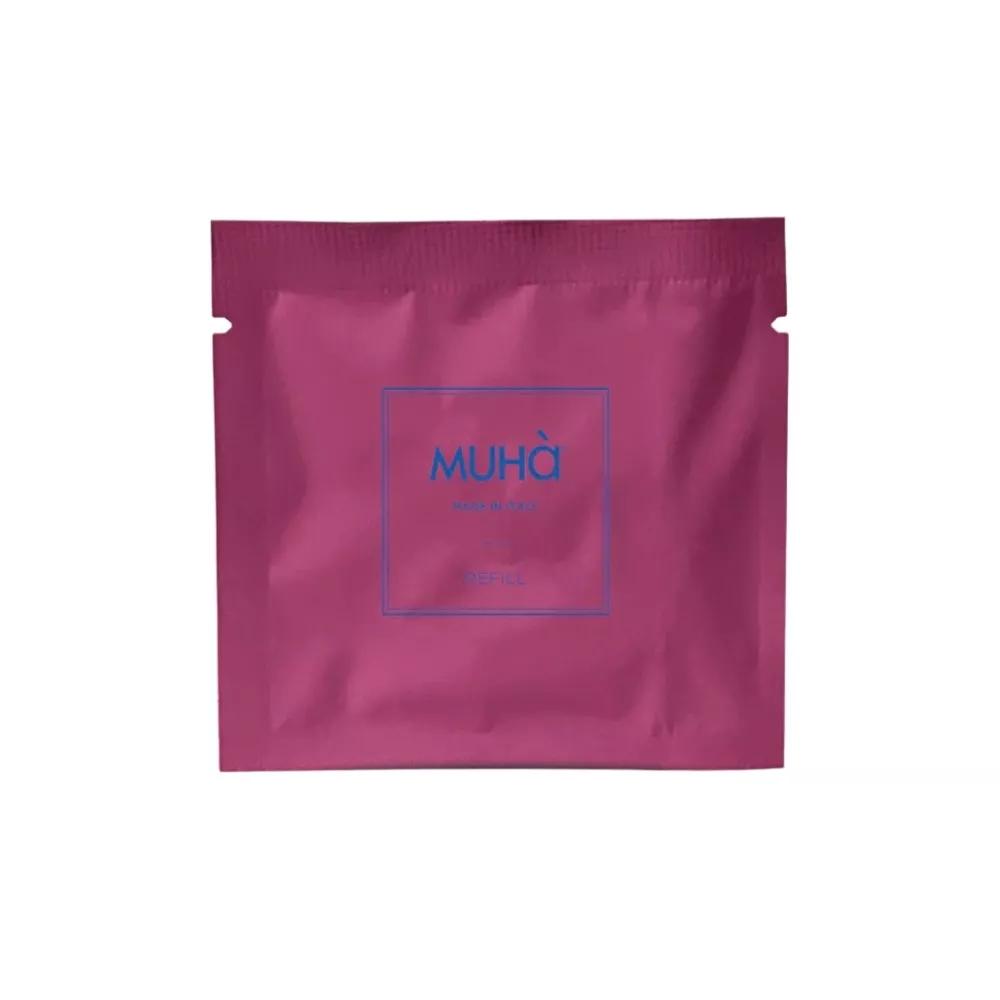 The car diffuser refill Lino e Cotone by Muha is designed to provide a gradual and long lasting release of an intense and refined fragrance. Compatible with the modern glossy eco leather car diffuser, it refreshes the interior with a scent inspired by the feeling of pure cleanliness. Lino e Cotone blends notes of marine algae, rose petals, lavender, sandalwood and oak moss, evoking sun dried white linen moved by a gentle breeze. An elegant fragrance and the perfect gift for those who appreciate freshness and harmony while traveling.