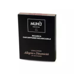 The car diffuser refill Uva e Fico by Muha is designed to provide a gradual and long lasting release of a fruity and enveloping fragrance. Compatible with the modern glossy eco leather car diffuser, it refreshes the interior with a rich and luminous scent. Uva e Fico blends intense notes of grape and fig with delicate hints of rose, orange blossom, apple and pear, creating a refined and uplifting atmosphere. A vibrant fragrance and the perfect gift for those who appreciate an elegant and joyful scent while traveling.