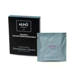The car diffuser refill Cuoio e Frutti by Muha is designed to ensure a gradual and long lasting release of an intense and enveloping fragrance. Compatible with the modern glossy eco leather car diffuser, it refreshes the interior with a warm and sophisticated aroma. Cuoio e Frutti blends woody leather and saffron notes with raspberry, blueberry and pear, enriched by delicate marigold accents for a bold and refined trail. A distinctive fragrance and the perfect gift for those who appreciate traveling with character and elegance.