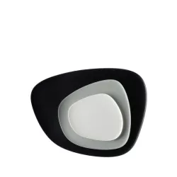 SET OF 3 TRAYS, "NAMASTE", 1236/CM - KARTELL The set of 3 different sized "Namaste" plates/trays features an organic and asymmetric design that calls to mind the idea of flat stones and an all-natural colour scheme. The plates can be matched to create mellow tone-on-tone nuances or more bold contrasts. The big tray is 45 cm length, 36 cm long and 2 cm high, the middle one is 27 cm length, 26 cm long and 1,4 cm high and the small one is 20 cm length, 19 cm long and 1 cm high. Material MELAMMINA Dimensions: Width: 45 cm, Depth: 36 cm, Height: 2 cm Unit weight: 1.9 kg