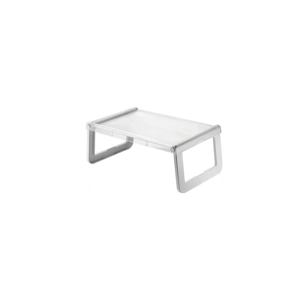 JOLLY MULTIPURPOSE TRAY, "HOME" - GUZZINI The Jolly multi-purpose tray can also be used as a bed tray with its fold away legs. The plate is available in the whole bright Guzzini color range and its surface is treated to hide scratches. sku: 08940000 dimensions: 58 x 35 x h 23,5 cm collection: Home designer: Luigi Massoni type: Bed / Multipurpose Tray material: PMMA|PS colour: Trasparente