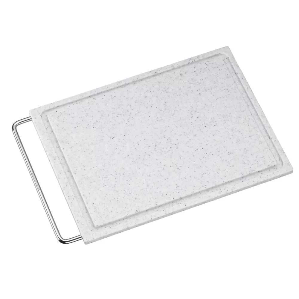 CUTTING BOARD WITH GROOVES, 36 x 27 CM, 18.7992.7470 - WMF The WMF Chopping Board is a versatile and multi-functional piece made from high-quality, knife-friendly plastic that offers a range of smart features for an easier cooking and preparation experience. Made from premium, high-quality plastic that is softer than blade steel and safe for kitchen knives, the WMF cutting board is also dishwasher safe for easy cleaning. The convenient juice grooves around the frame make preparation easier and keep your kitchen spotless on a daily basis.