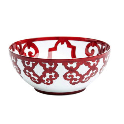 The Balcon du Guadalquivir salad bowl by Hermès celebrates the artistry and tradition of Andalusian wrought ironwork through its intricate, refined design. The vivid red pattern adds a touch of Mediterranean warmth and elegance to any setting, turning every meal into a visual and culinary delight. Made of fine porcelain with a generous 300 cl capacity, it is perfect for serving salads, fruit, or shared dishes with timeless sophistication.