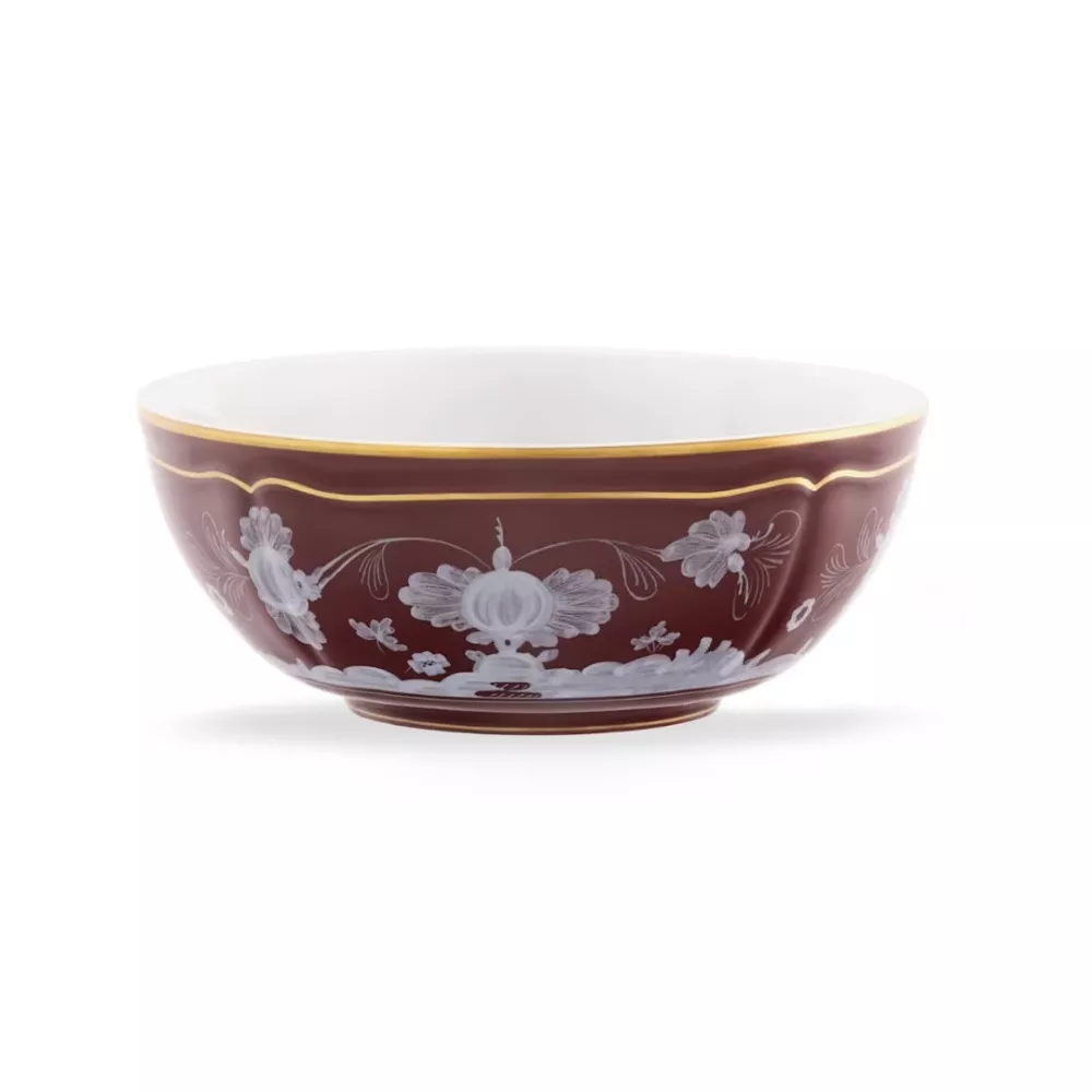 The Oriente Italiano bowl by Ginori 1735 embodies a bold and refined decorative vision, where the elegant Antico Doccia shape meets the exotic charm of the carnation motif. Vibrant colors and hand painted decoration transform this piece into a striking table accent, celebrating artistic porcelain, Italian heritage and decorative luxury. Part of an iconic collection, it also stands as the perfect gift for those who appreciate timeless tableware design.