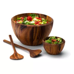Elegant bowl in hard acacia wood. Handmade, so each piece is unique. Ideal for presenting fruit, bread or salads. Clean it only with a damp cloth. Excessive humidity or temperature differences can lead to warping, cracking and discoloration. Material: acacia wood Diameter: 25 cm