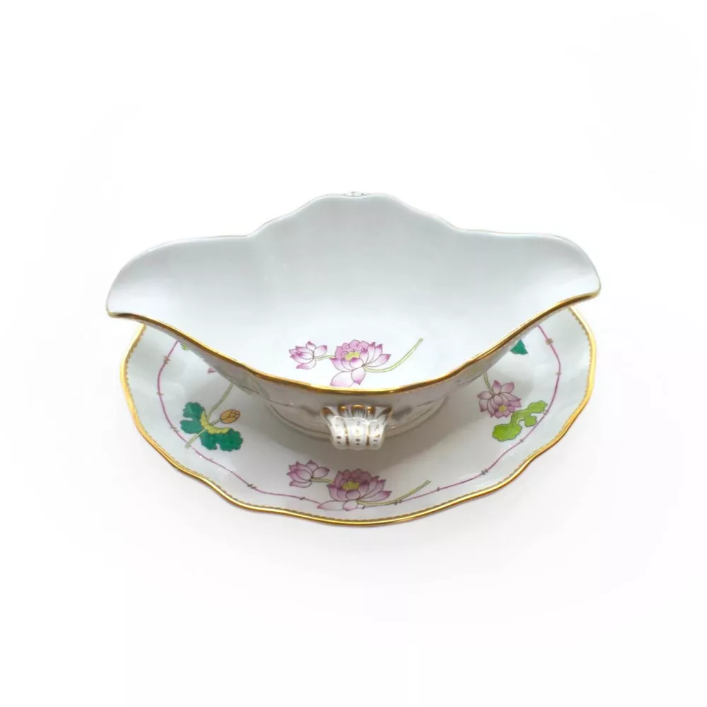 Sauce boat l 24 x h 9 cm Material: fine china with gold decorations Code: 20227 Hand wash recommended Never microwave an item with gold or platinum trim.
