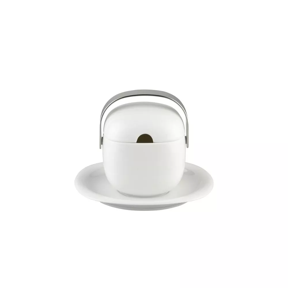 Made of white porcelain and stainless steel handle, the shape takes name from the country of origin Suomi-Finland. The designer inspired by the shape of Finland's coasts pebbles. Capacity: lt. 0,52 Dishwasher safe. Designer: Timo Sarpaneva