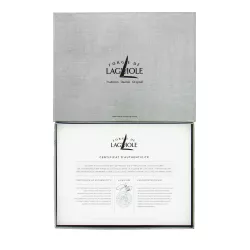The collection Tradition of Forge de Laguiole® table knives is the perfect combination of traditional craftsmanship, quality and refinement. The Original Forge de Laguiole® knife is characterized by its fluid and silky cut, which underlines the pleasure of a carefully prepared meal and a table set with love and care. Laguiole works with natural materials whose texturing and colour can vary. The photos on this site are not contractually binding. The engraving is applied to the back of the blade using a diamond tip. This option is not available for Damascus or "Brut de Forge" blades. To avoid errors, please check your engraving before confirming your order. This option does not require additional delivery time. Set of 6 table knives Ref: T6 2M IN CF - 4505 Size: 23.50 cm Handle material: Deer antlers Finish: High polish Box: Set of 6