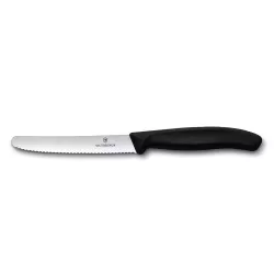 Vegetable Knife with Ultra-Sharp Wavy Edge Take on tomato skin, show that watermelon who's boss. No fruit or vegetable can resist the ultra-sharp wavy edge of our vegetable knife. And thanks to its ergonomic handle and perfect size, you could also use it to cut anything else in the kitchen. Dimensions: L 22.0 x h 2.4 cm Weight: 28 g Forged: No Edge Type: Wavy edge Blade Length: 11 cm Material: Polypropylene (PP) Color: Black Dishwasher Safe: Yes