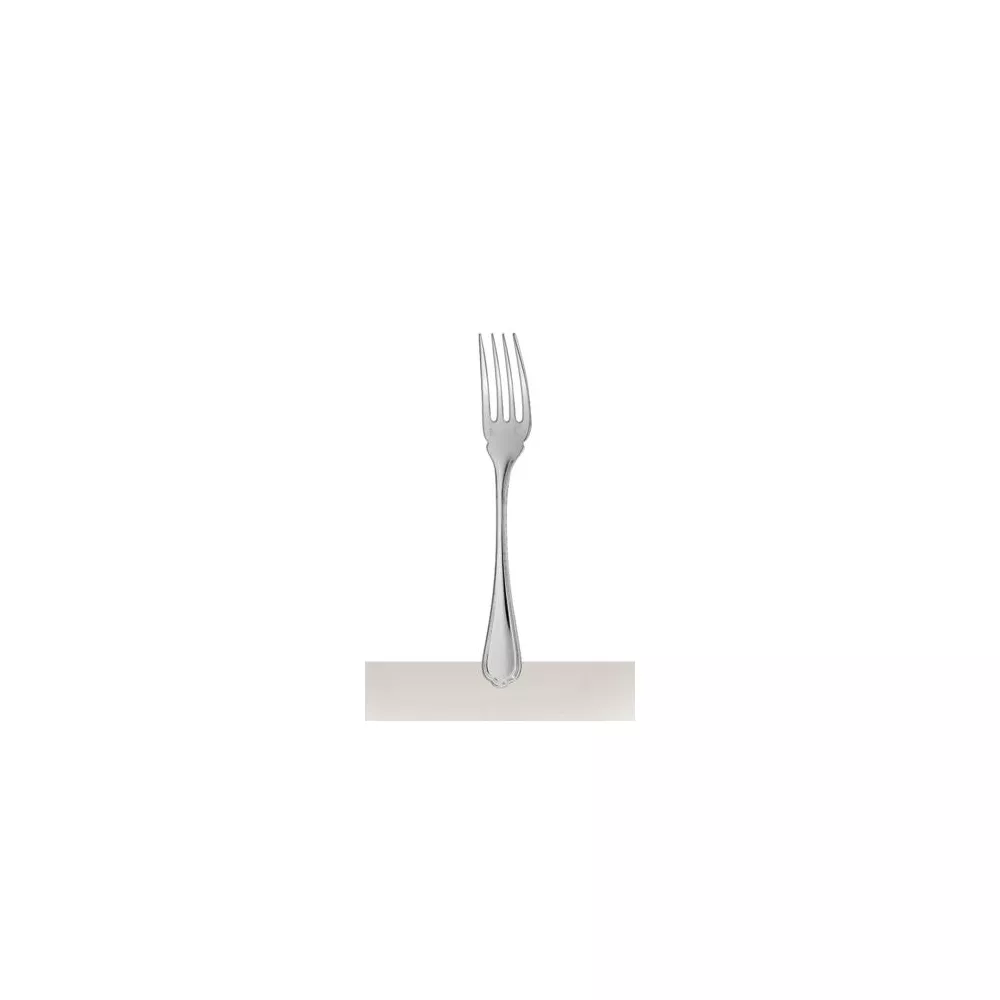 Christofle Spatour Silver Plated Fish Fork The silver plated fish fork in the Spatours pattern can be used in conjunction with a fish knife to easily separate meat from fish bones. Reflective of its 19th century roots, the Spatours collection, which was available in the first Christofle catalogue in 1862, features generous curves, decorative heels and a slender rounded ridge common in Louis XV style. Launched in 1862, the slender ridge & curve were common decorative elements in the Louis XV style of the eighteenth & nineteenth centuries. MATERIAL • Silver Plated DIMENSIONS • : 18 cm