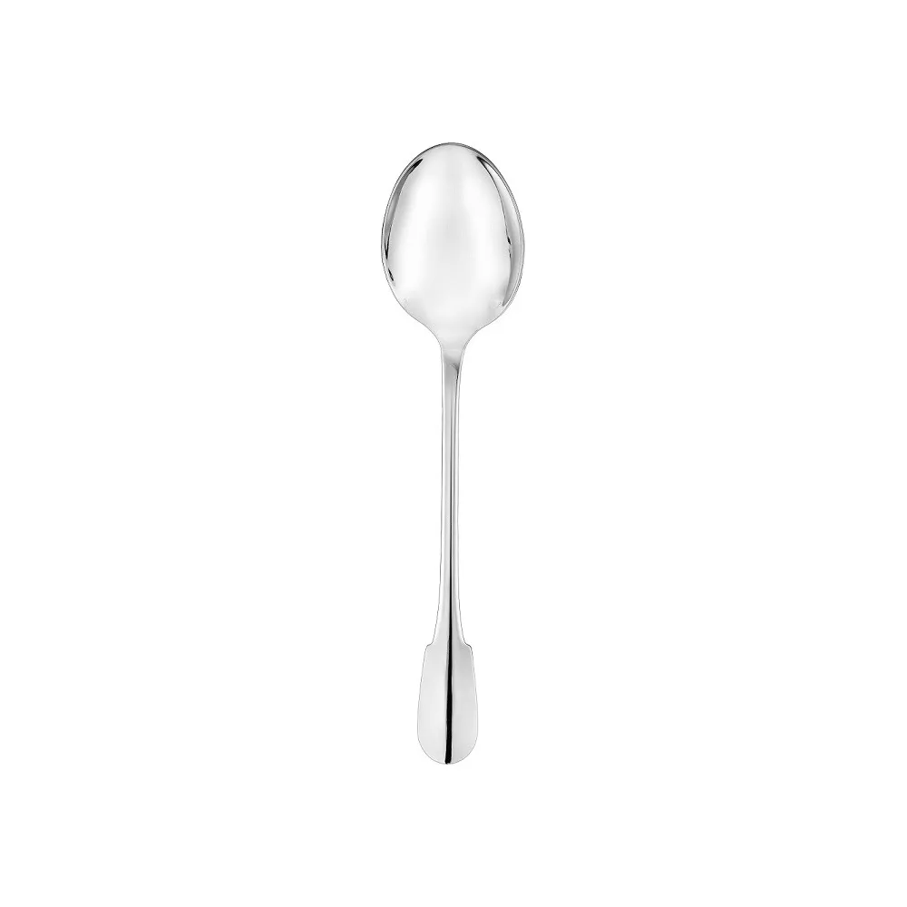 Christofle Cluny Silver Plated Serving Spoon The silver plated serving spoon in the Cluny pattern is ideal for serving meat and vegetables. Serving utensils are sized to the collection’s platters so they do not fall into the food. The simple and elegant Cluny collection, which dates back to Christofle‘s first catalog in 1862 when it was known as Uni, was slightly redesigned in 1964. It still maintains an overall Louis XIII feel and is a blank canvas for personalization. MATERIAL • Silver Plated DIMENSIONS • : 26 cm
